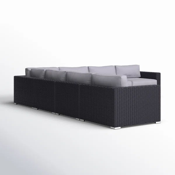 • Versatile Layout: Customize your outdoor space with this 7-piece sectional set including six chairs and a corner unit.