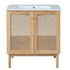 Bathroom Vanity Crafted From Natural Materials, Featuring Handmade Rattan Doors And Soft-Closing Mechanisms - Light Brown