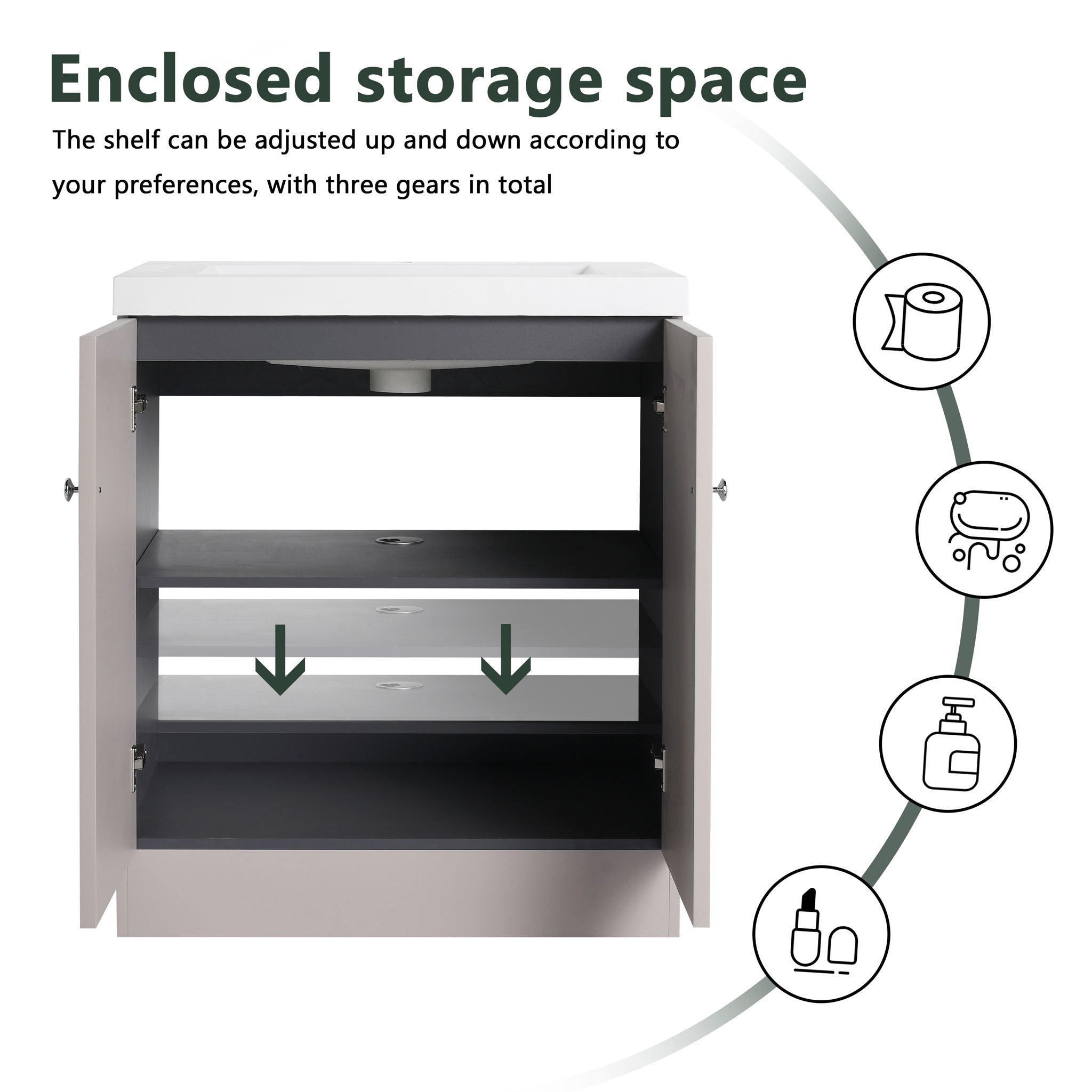 Modern Style Freestanding Bathroom Vanity With White Resin Sink & Soft Close Cabinet Doors - Khaki