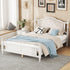 Queen Pine Wooden Bed With Upholstered Headboard And Panel Footboard, With Two Bed Rail Support Feet And Central Platform Support Feet - White