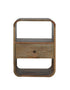 • London Nightsand - This solid wood nightsand has been constructed from 100% solid mango wood in an oak-ish finish and offers a nice rounded look on the edges. It features 1 drawer which comes with a shiny knob and 2 open slots for extra storage. A great, simple addition to the bedroom.