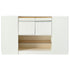 Modern Luxury Multi-Functional Island Vanity Dresser And Storage Cabinet With Glass Tabletop, Display Shelf, 6 Drawers For Walk In Wardrobe And Bedroom - Cream White