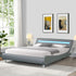 Queen Size Upholstered Platform Bed Frame With LED Lighting, Curve Design, Wood Slat Support, No Box Spring Needed - Gray