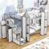 Metal Twin Over Twin Castle-Shaped Bunk Bed With Wardrobe And Multiple Storage - Gray / White