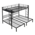 Modern Metal Triple Bunk Bed With Vertical Ladder, Safety Rail, And Storage Shelf - Black
