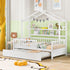 Twin Size House Bed With Trundle, Kids Bed With Shelf - White
