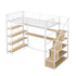 Twin Size Loft Bed With Built In Desk, Staircase Storage & 4 Tier Shelves - White
