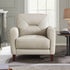 Mavis promises to infuse a touch of sophistication into any modern home with its well-structured design and tasteful embroidery on the back cushion and armrests. The inclusion of the 5” solid wood tapered leg design not only adds a stylish flair but also ensures convenience, allowing your heels to fit comfortably underneath the sofa for easy standing. This showstopper is certain to delight, blending elegance and practicality seamlessly in your living space.