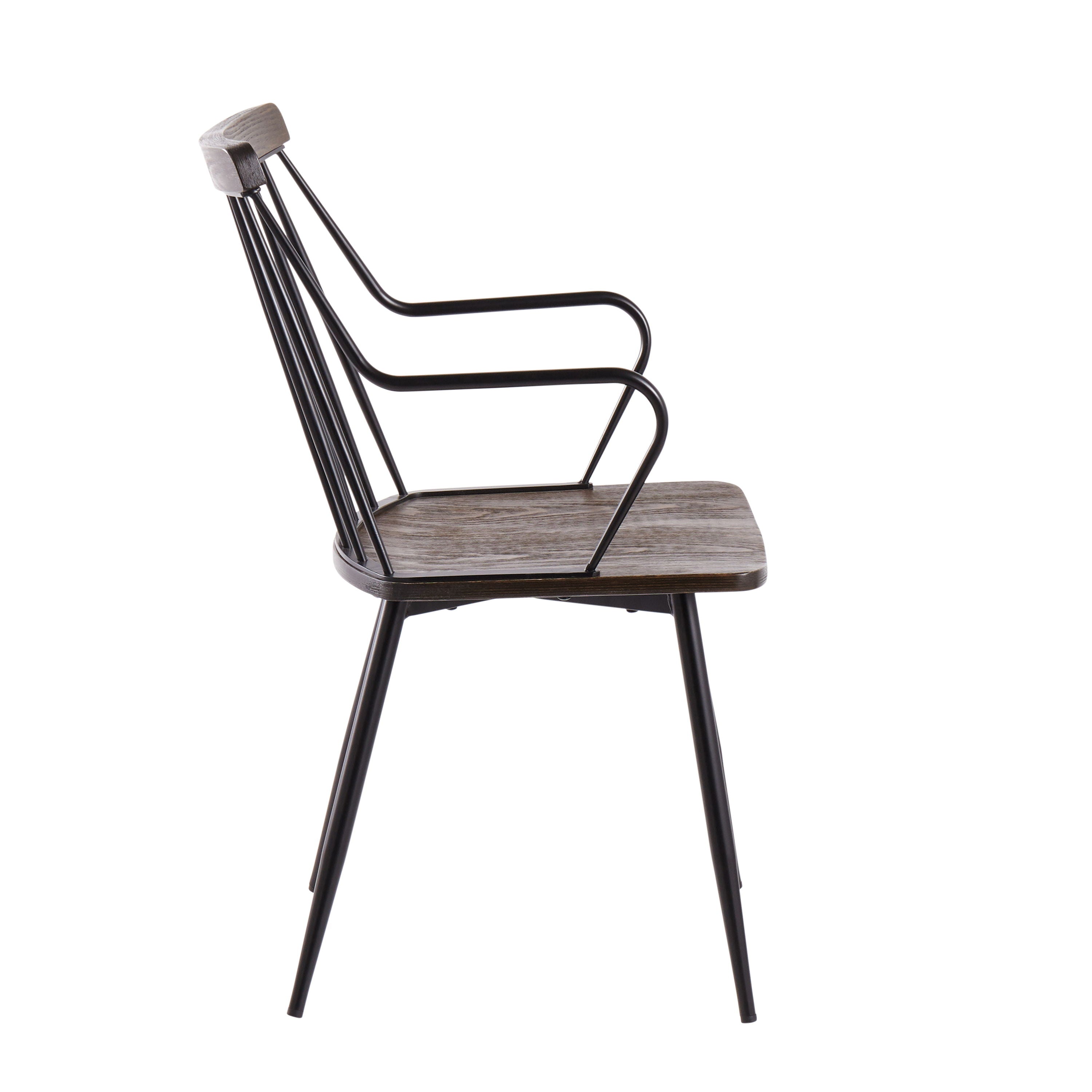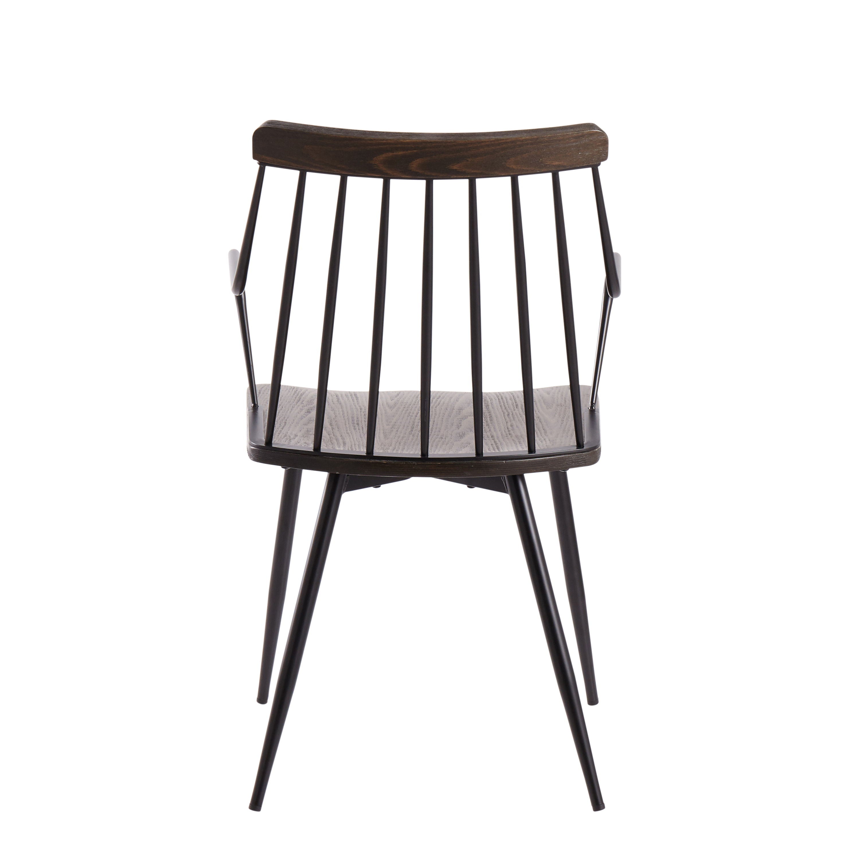 • Unique Design: Features an updated spindle back design with tapered metal armrests, spindles, and legs, paired with a contrasting wood seat for a distinctive look.