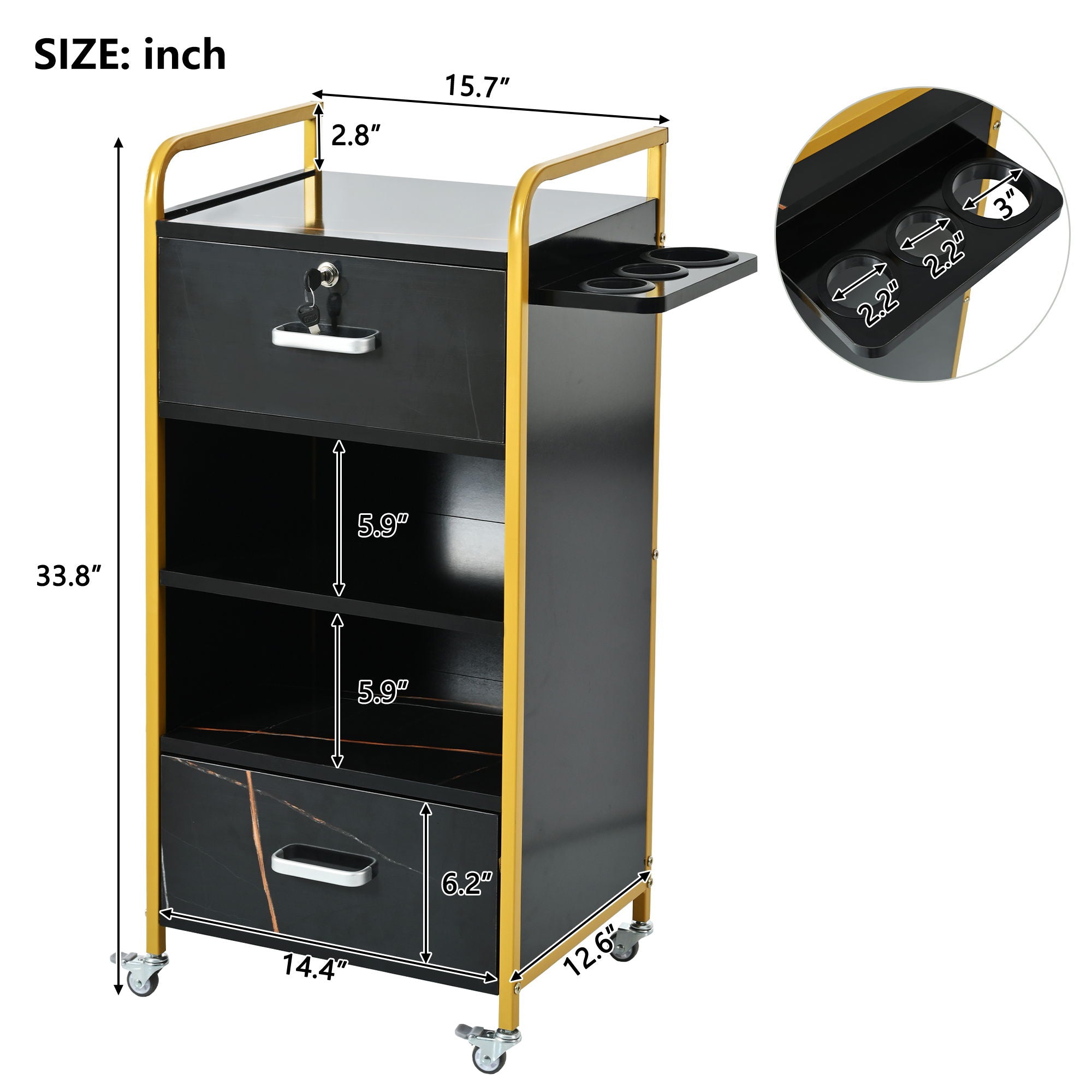 Locking Salon Storage Cabinet, Beauty Barber Salon Styling Station Organizer Equipment With 3 Hair Dryer Holder, 2 Drawers For Beauty Spa Barber Shop - Black