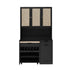 Kitchen Pantry Storage Cabinet, Modern Buffet Cabinet With Kitchen Cart, Tall Kitchen Hutch Cabinet With Microwave Stand, Food Pantry Cabinet With 3 Rattan Doors And Adjustable Shelves - Black