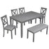 6 Pieces Kitchen Dining Set, Rectangular Wooden Dining Table With 4 Upholstered Chairs And A Bench, Dining Table Set For 6 People - Gray
