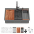 Drop In Kitchen Sink With Pull Out Faucet And Soap Dispenser, Single Bowl Topmount Sink - Gunmetal Black