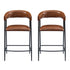 Counter Stools (Set of 2), Upholstered Counter Stools With Iron Frame, Backrest, Footrest, Arm Counter Stools For Home Bar, Kitchen Counter - Brown