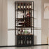 82.7" Industrial Standing Wine Rack With Glass Rack Tall Freestanding Floor Bar Cabinet - Walnut / Black
