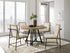 • The Tate Oak Dining Table Set masterfully combines rustic charm and contemporary design. With its generous 47" round top, this table is perfect for gatherings, offering ample space for guests. The tabletop is adorned with a beautifully distressed oak finish. This finish accentuates the natural wood grain and showcases visible knots, adding an authentic, rustic appeal to your dining space. The metal construction of the metal leg frame provides a striking contrast to the wood top, blending rustic and industrial styles. The dining chairs offer a sophisticated addition to the set with their sleek design. The incorporation of a back bar handle is not only a unique design element but also provides practicality, allowing for easy movement of the chair. It's a great choice for both traditional and contemporary dining rooms, providing a warm, welcoming ambiance.