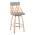 • Comfort and Style: The stool's padded seat is upholstered in chic fabric, complemented by a natural finish lattice back, offering both comfort and visual appeal.