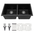 Kitchen Sink 33" X 19" Granite Composite Double Bowl Undermount Sink - Black