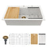 • Comprehensive Package: Includes drying roll-up rack, baskets strainers assembly, bottom grid, cutting board, installation clips, cutout template, and installation guide.