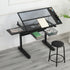 Hand Crank Adjustable Drafting Table Drawing Desk With 2 Metal Drawers With Stool