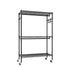 Heavy Duty Rolling Clothes Rack With 3 Tier Shelves, 2 Rails & Side Hooks, Adjustable Freestanding Organizer Metal - Black