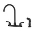 Kitchen Sink Faucet With 2 Handles And Pull Out Side Sprayer - Matte Black