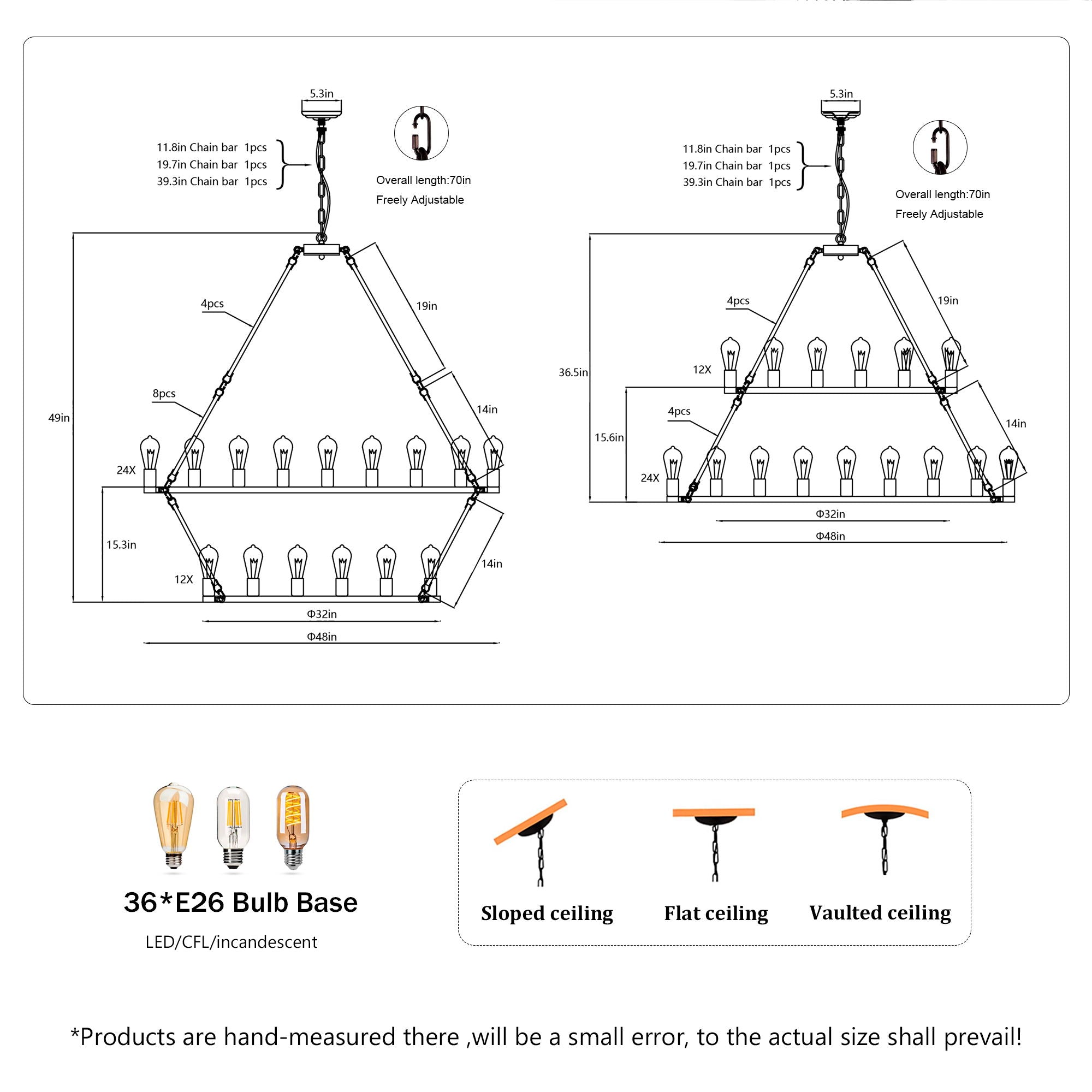 • Bulb Compatibility: Designed for 36 E26 bulbs, each with a recommended maximum power of 25W (bulbs not included).