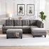 Sofa Set For Living Room With Chaise Lounge And Storage Ottoman, Living Room Furniture - Gray