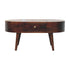 • Rounded Table - This solid wood table has been constructed from 100% solid mango wood in a finish and offers a unique shaped design with rounded edges. It features one small drawer with a shiny knob and Nordic style legs. A great, simple addition to the home.