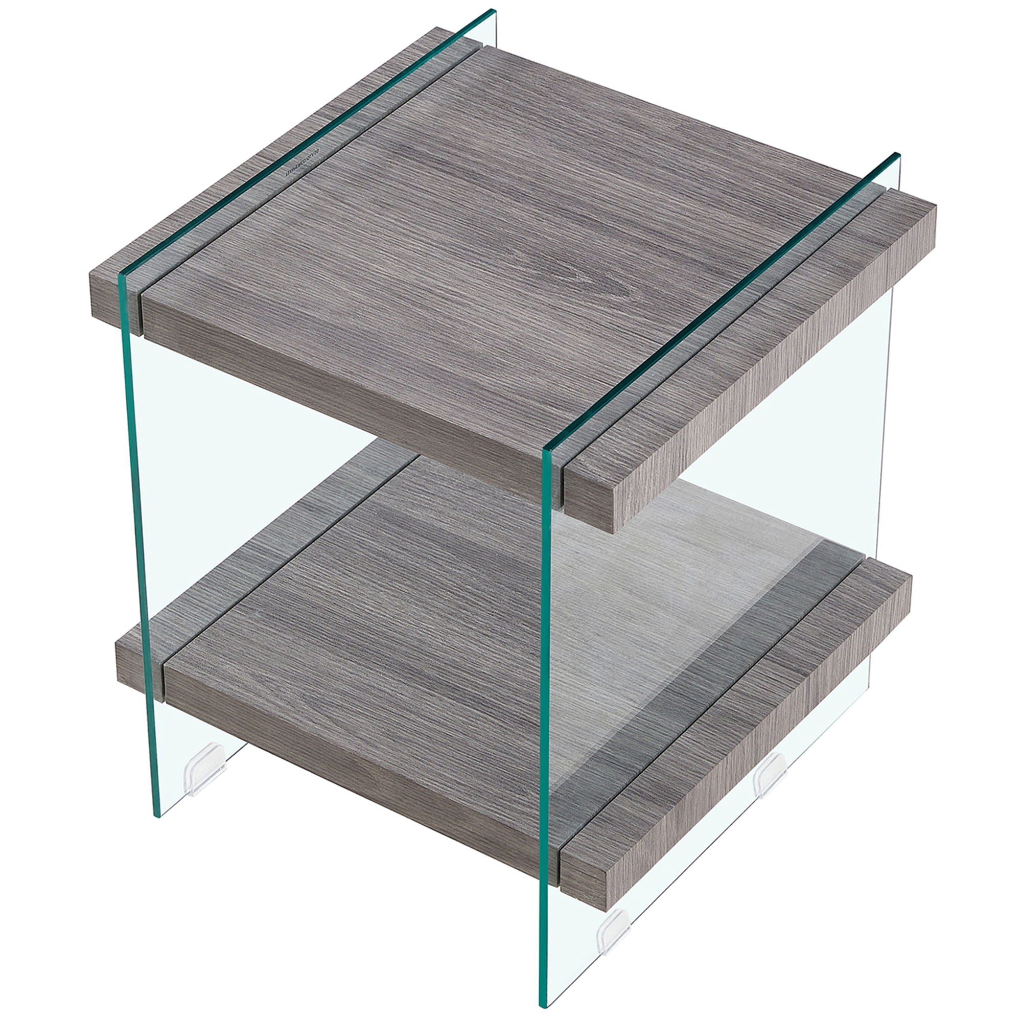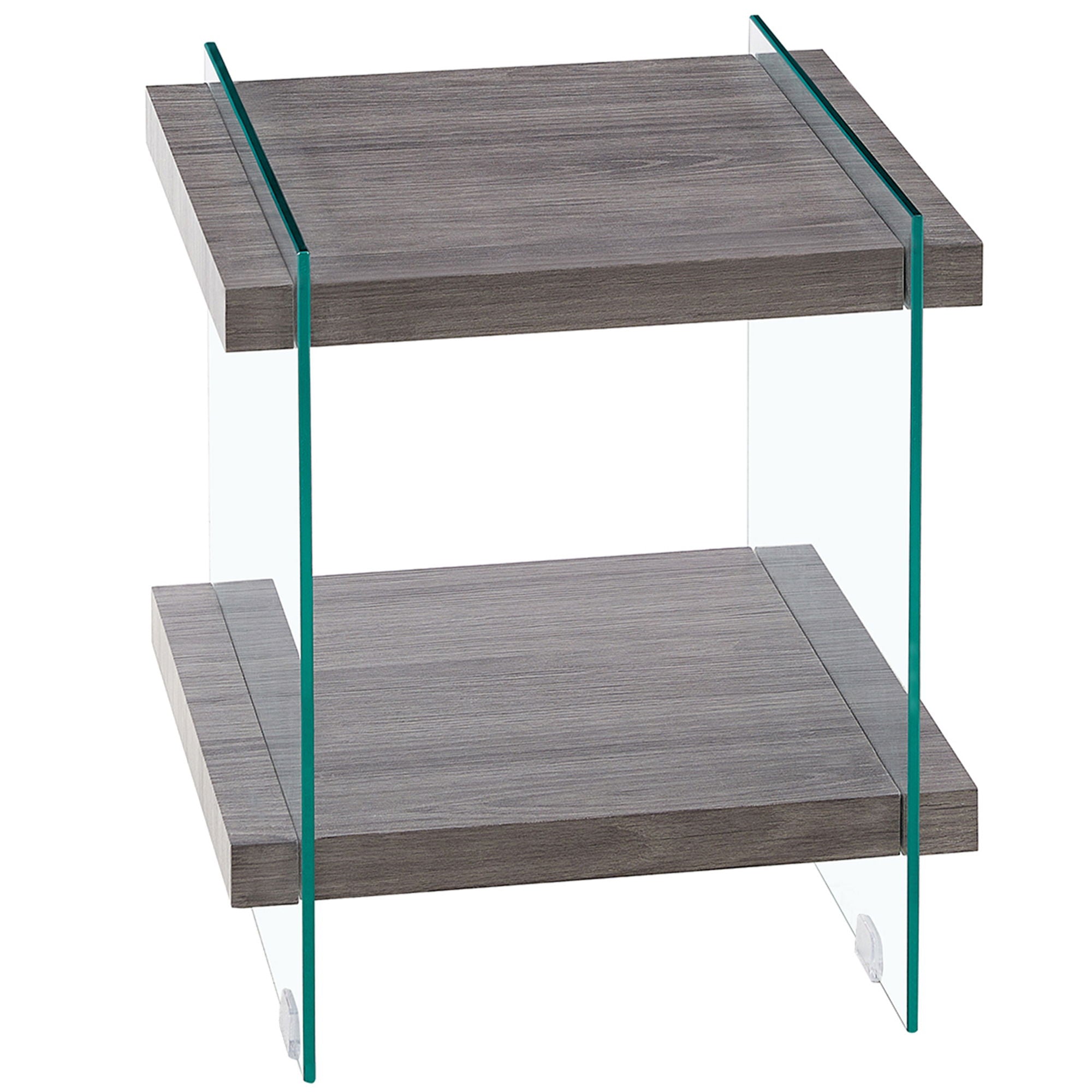 Sleek And Sturdy Tempered Glass Leg Side Table With Dual MDF Shelves, Modern Nightstand End Table For Living Roon, Bedroom - Transparent / Gray