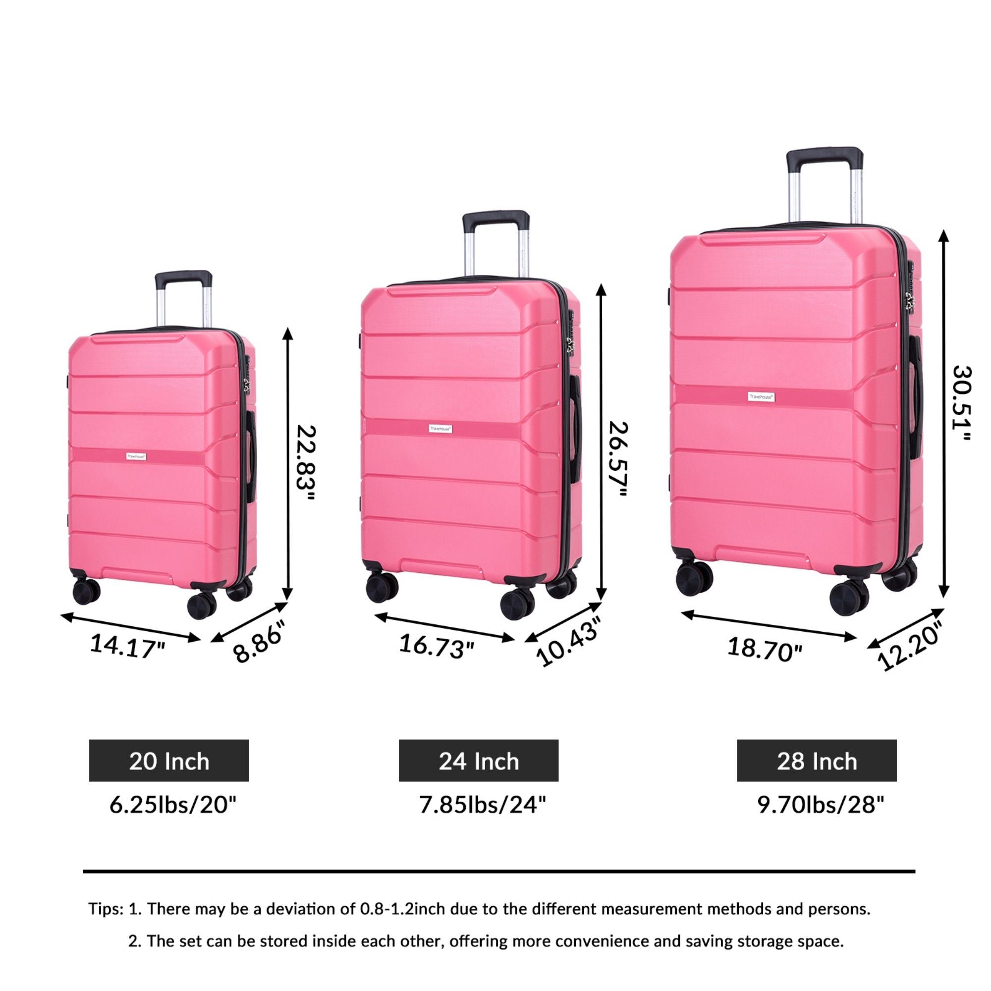 Hardshell Suitcase Spinner Wheels Pp Luggage Sets Lightweight Durable Suitcase With Tsa Lock, 3 Piece Set (20/24/28) - Rose