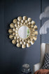 Round Metal Mirror With Trumpet Vine Motif - Gold