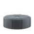 • Lifestyle: This contemporary-style coffee table ottoman features a button-tufted center design and a solid fabric cover, complemented by thick welting.