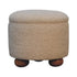 • Features: storage stool, boucle, cream, footstool, living room, ball feet, upholstered, solid wood, mango wood, accent piece