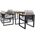 • Durable Materials - Crafted from high-quality acacia wood and steel, the dining set ensures durability and stability. The steel frame provides a solid foundation, while the acacia wood adds a natural and elegant touch, ideal for outdoor environments.