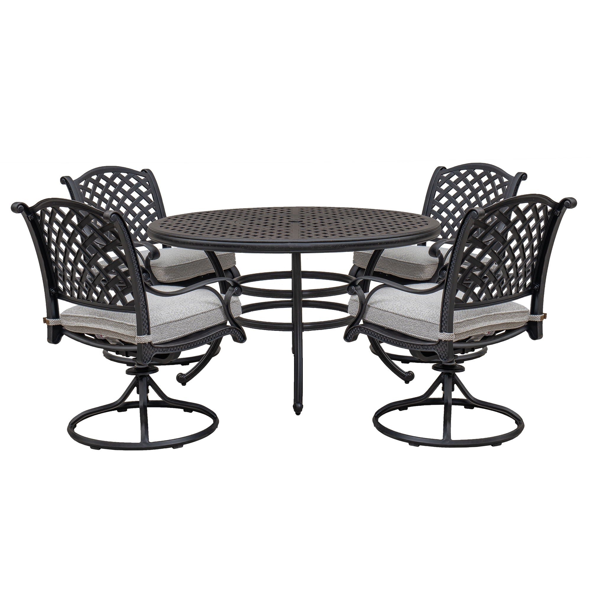• 5-Piece Dining Set: Versatile set with four swivel chairs and a round table. Features a 2-inch umbrella hole for shade. Ideal for outdoor gatherings and patio dining.