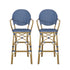 Outdoor Wicker And Aluminum French Barstools Set With Bamboo Print - Navy Blue