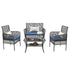Outdoor Patio Furniture Set, 4 Pieces Rattan Wicker Chairs With Tempered Glass Table And Cushions - Blue