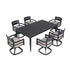 7 Piece Outdoor Patio Aluminum Furniture, Modern Dining Set, Including 6 Swivel Rockers Sunbrella Cushioned And Rectangle Dining Table With Umbrella Hole - Ember Black