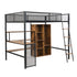 Full Size Loft Bed With Built In Desk, Wardrobe, And Shelves - Black