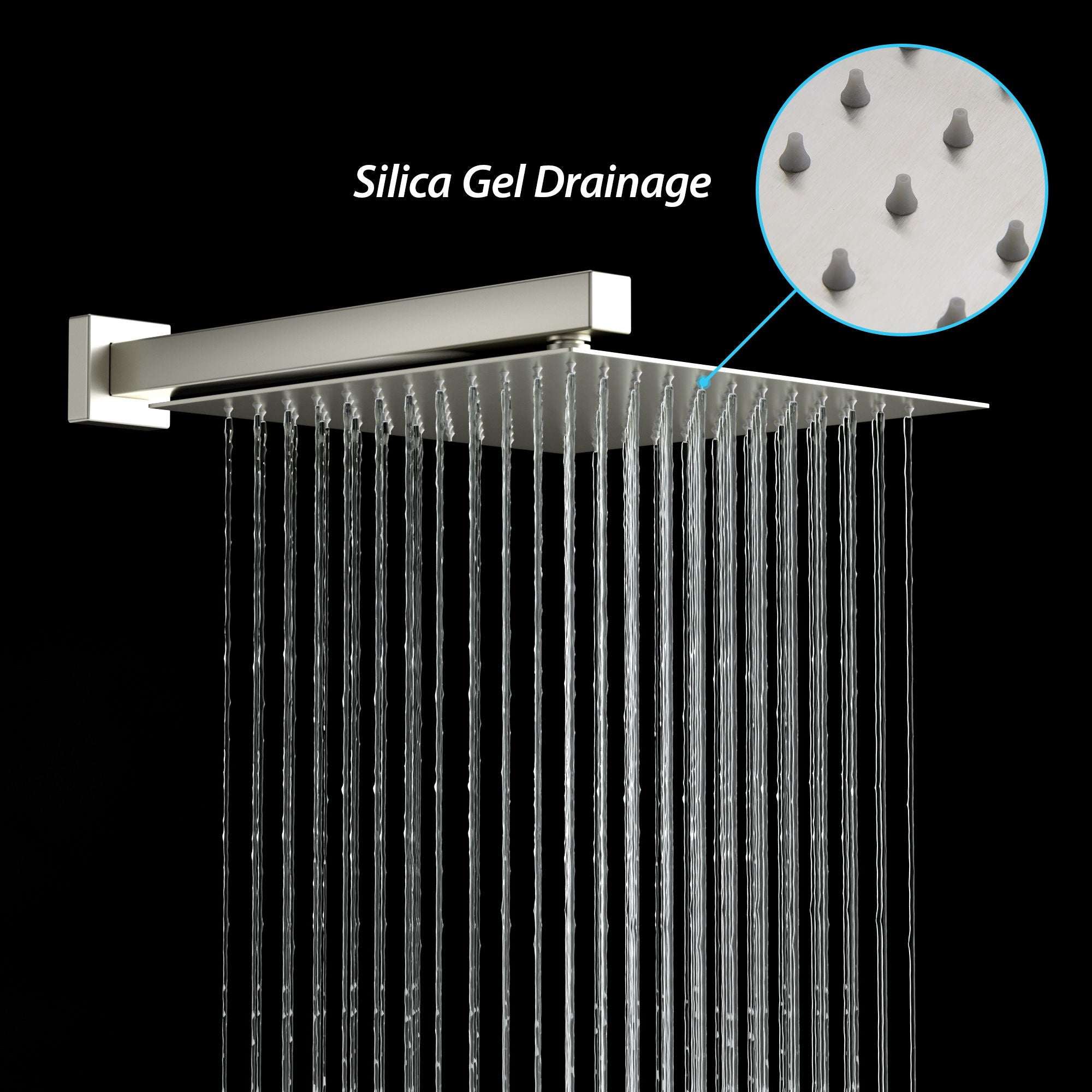 • Included Components: Comes with a 10-inch square rain shower head, shower arm, water control valve, and installation instructions.