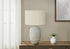 • Stylish Design: Vase-like shape in textured grey cream resin with an ivory linen drum shade and gold finial adds fashionable, eclectic style to any room.