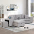 • Convertible Design: Includes a 2-seat sofa, storage chaise lounge, and 2 stools. The chaise can be positioned on either the right or left side, providing flexibility in arrangement.