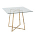 • Contemporary Features: Boasting contemporary styling, the table features a fixed dining height and a luxurious square glass top paired with a gold metal base, offering a blend of sophistication and functionality.