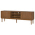 TV Stand With Vertical Slatted Doors And Sliding Panels, Solid Wood Legs - Brown