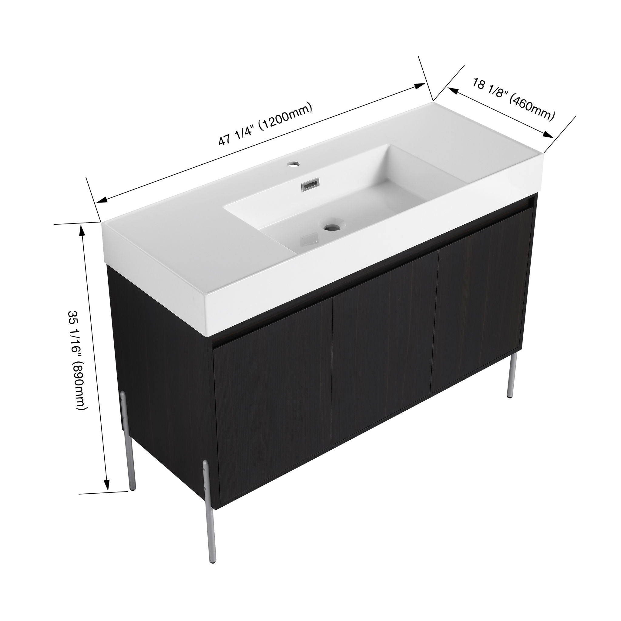 Freestanding Bathroom Vanity With Resin Sink And Storage Cabinet - Dark Oak
