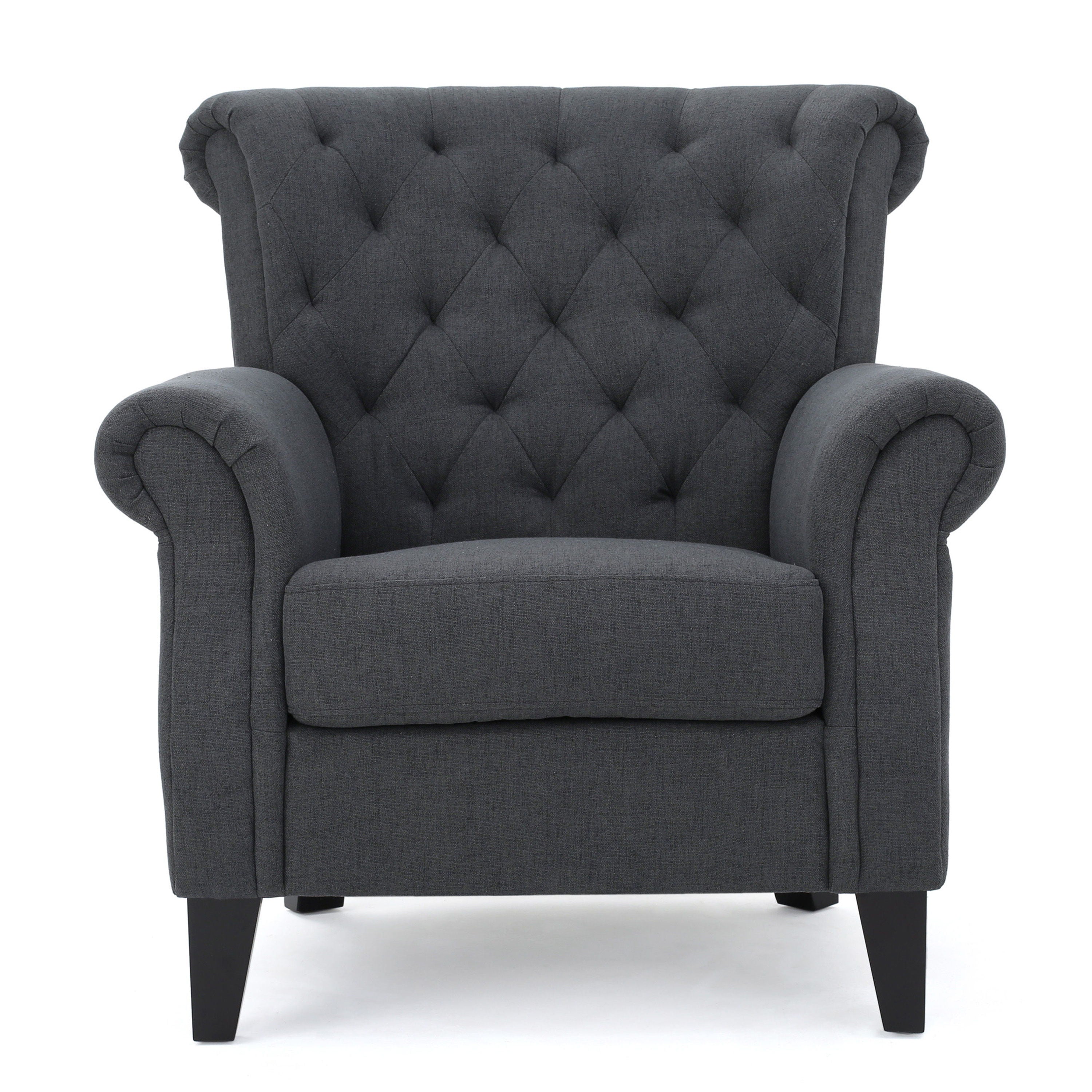 Comfy Accent Chair With Tufted Backrest, Bedroom Single Seat Arm Chair With Wooden Legs, Modern Side Chairs For Living Room - Dark Gray
