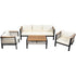 • Ultimately Comfortable Cushions: The outdoor sofa set features cushions filled with high-density foam, offering superior support and comfort for prolonged use. They maintain their shape and provide a relaxing seating experience, perfect for lounging or entertaining guests.