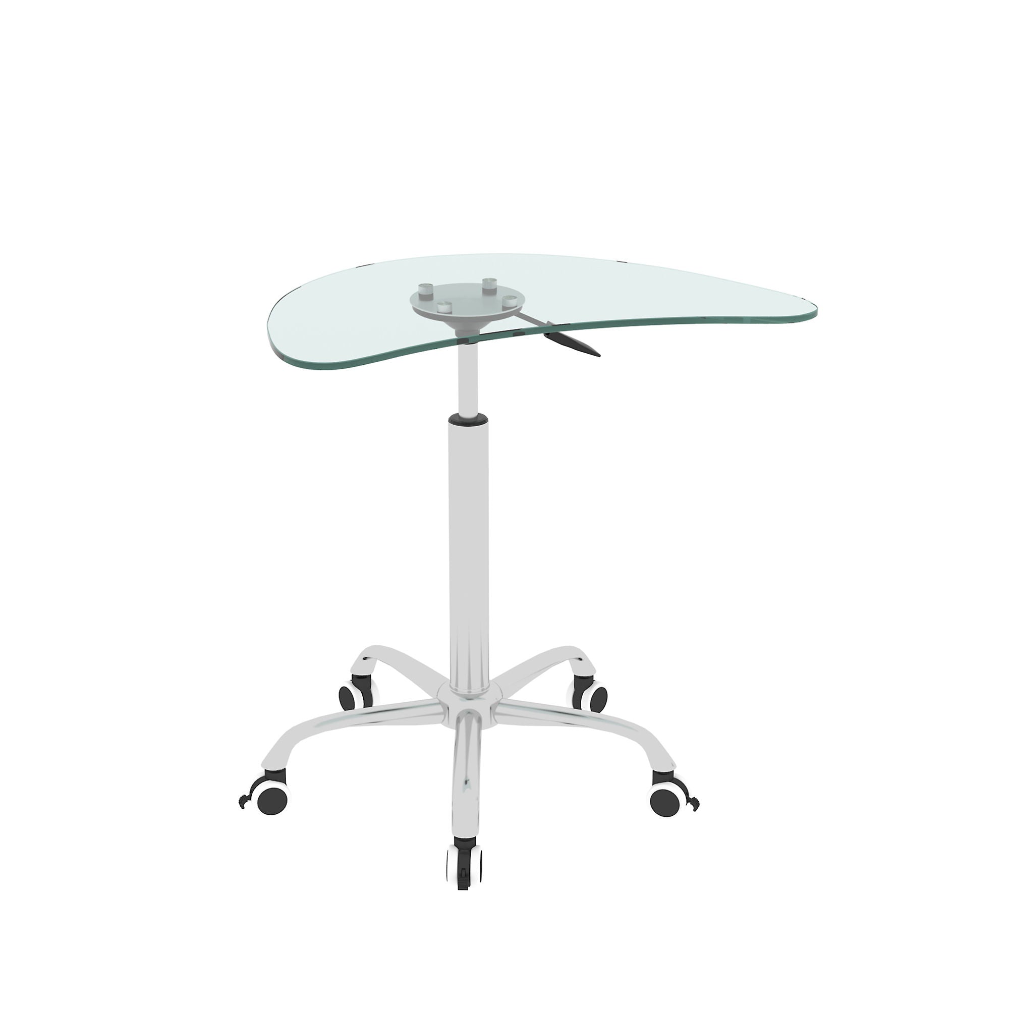Adjustable Height Transparent Tempered Glass Table Desk Table With Lockable Wheels - Transparent / White