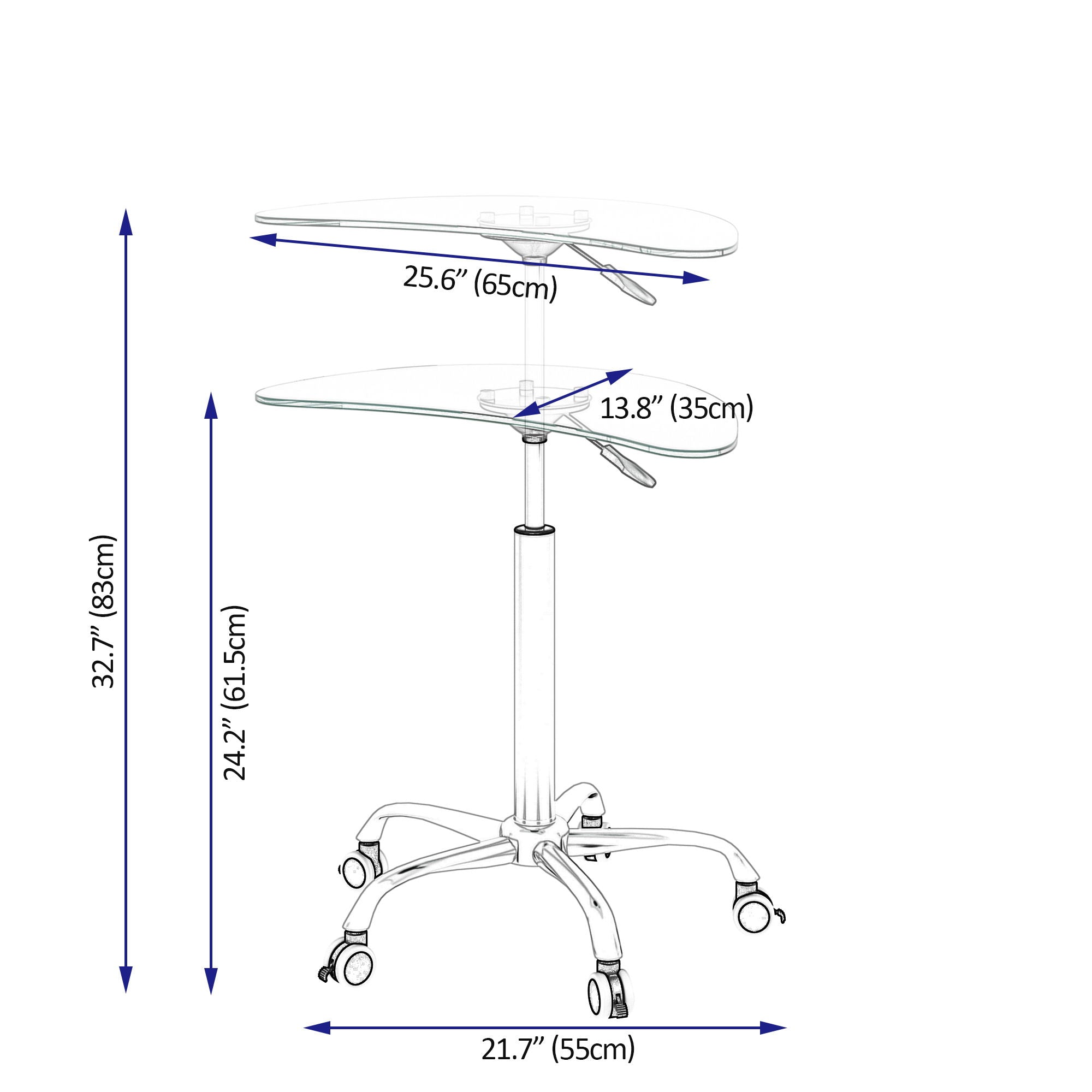 Adjustable Height Black Tempered Glass Table Desk Table With Lockable Wheels - Transparent / White